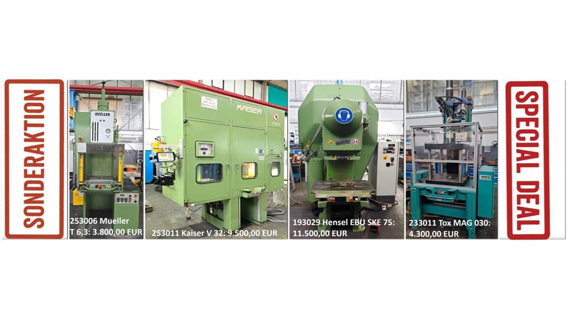 Sonderaktion von Pressen. Preise verstehen sich im gegebenen Zustand ohne in Betrieb nehmen. Lagernummer | Stock-No. für Details anklicken!